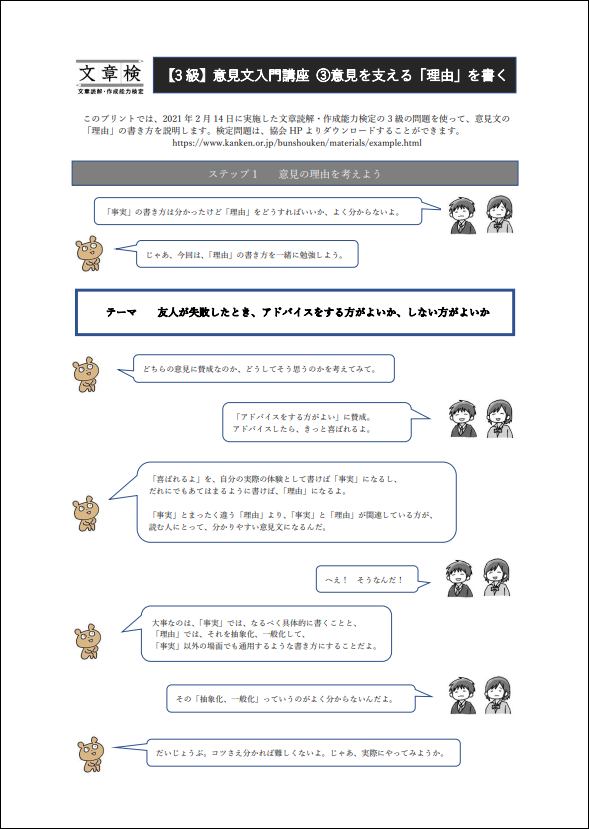 文章検 【3級】意見文入門講座③意見を支える理由を書く