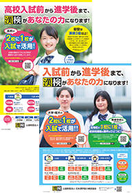 請求可申込用紙がついた児童・生徒に配布するパンフレットです。(志願者情報「有」でのお申し込みに必要となる申込用紙Bが付いています。)
