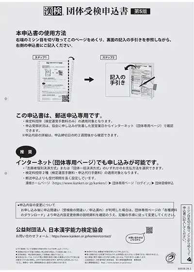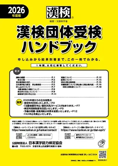 事前に漢検のご担当者様に必ず読んでいただきたい、申し込みから検定結果到着までの流れについて詳細を記載した冊子です。
