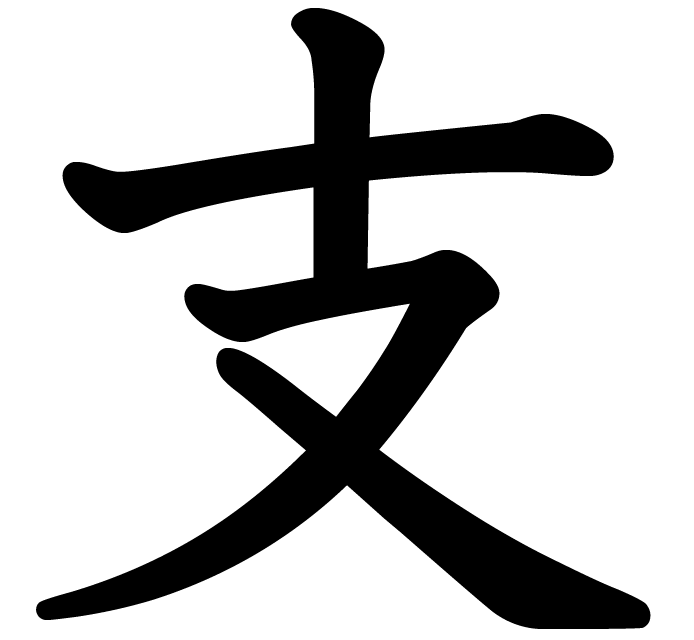 ①わかれる。えだわかれする。また、わかれたもの。「支店」「支流」